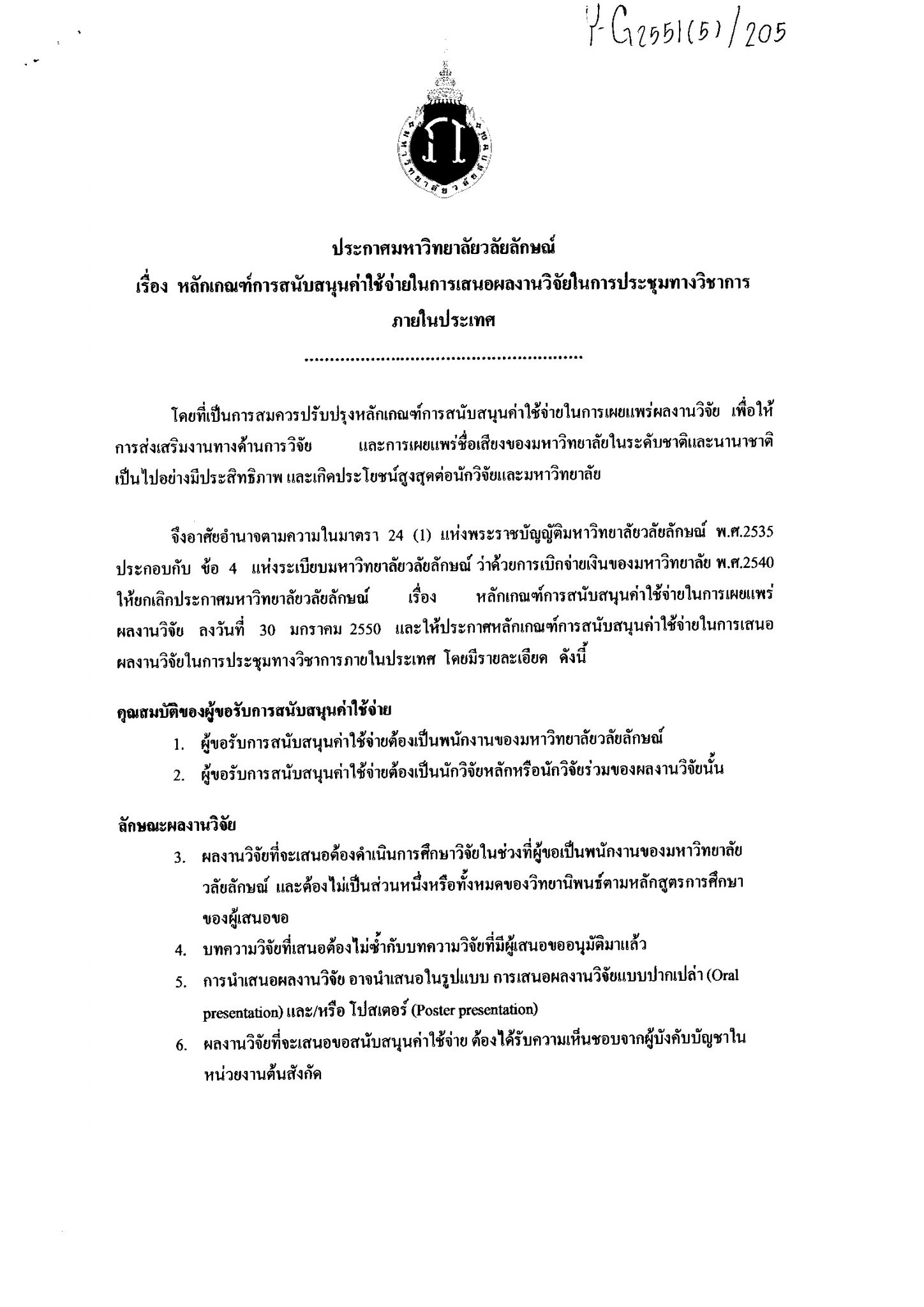 หลักเกณฑ์การสนับสนุนค่าใช้จ่ายในการเสนอผลงานภายในประเทศ