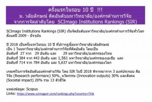 ม. วลัยลักษณ์ ติดอันดับองค์กรด้านการวิจัย จากการจัดลำดับโดย SCImago Institutions Rankings (SIR) เป็นครั้งแรกในรอบ 10 ปี