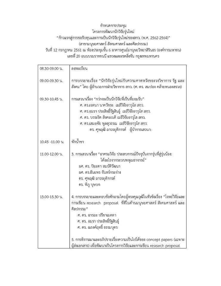 สำนักบริหารวิจัย จุฬาฯ และโครงการ MMS สกว. ขอเชิญนักวิจัยรุ่นใหม่และรุ่นกลางเข้าร่วมประชุมสัมมนา “เริ่มต้นงานวิจัยอย่างไรให้มีชัย” 30 ตุลาคม 2561 รับฟัง**ภาพรวมแหล่งทุนวิจัยและการเลือกหัวข้อวิจัยสำหรับอาจารย์ โดยรองอธิการบดีวิจัยและนวัตกรรม จุฬาฯ**แนะนำรูปแบบและเทคนิคการขอทุน สกว.โดยตรงจาก ผอ.ฝ่ายวิชาการ สกว.**การเขียนข้อเสนอโครงการให้ได้ทุนจากผู้ทรงคุณวุฒิผู้มีประสบการณ์รีวิวข้อเสนอโครงการวิจัยแต่ละสาขา**แนะนำทุนต่อเนื่องเส้นทางการขอทุนวิจัย**
