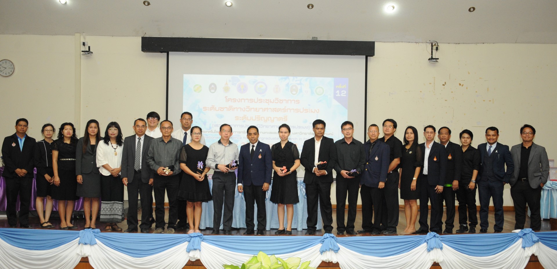 งานประชุมวิชาการระดับชาติทางวิทยาศาสตร์การประมง ระดับปริญญาตรี ครั้งที่ 12 ในครั้งนี้ได้รับเกียรติการบรรยายพิเศษจากผู้ทรงคุณวุฒิ อาทิ เช่น การบรรยายพิเศษ เรื่อง ทิศทางการวิจัยทางการประมงในยุคปัจจุบันและอนาคต โดย ศาสตราจารย์ ดร. ทวนทอง จุฑาเกตุ มหาวิทยาลัยอุบลราชธานี การบรรยายพิเศษเรื่อง ปลาทูอ่าวไทยและงานวิจัยที่เกี่ยวข้อง โดย ผู้ช่วยศาสตราจารย์ ดร. เมธี แก้วเนิน มหาวิทยาลัยเกษตรศาสตร์ การบรรยายพิเศษเรื่อง แบบจำลองกระแสน้ำ (Hydrodynamics model) และการประยุกต์ใช้ โดย ดร. ธนัสพงษ์ โภควนิช มหาวิทยาลัยเกษตรศาสตร์ และการนำเสนอผลงานของนักศึกษาระดับปริญญาตรี ของ ทั้ง 8 สถาบันการศึกษาอีกด้วย