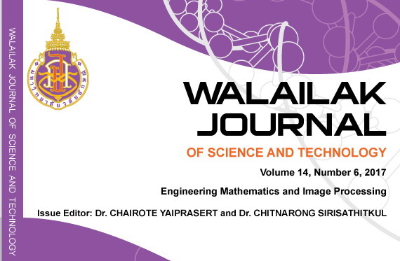 Walailak Journal of Science and Technology ปีที่ 14 เล่มที่ 6 (Volume 14 Number 6 June 2017: Engineering Mathematics and Image Processing) ออกเผยแพร่ออนไลน์แล้ว ประกอบด้วย 7 บทความด้านการประมวลผลภาพและคณิตศาสตร์ในวิศวกรรม ที่เป็นผลงานร่วมของ University of Zawia (ประเทศลิเบีย), University of Lagos (ประเทศไนจีเรีย) Sultan Moulay Slimane University (ประเทศโมร็อกโก) Shanghai University (ประเทศจีน), มหาวิทยาลัยเทคโนโลยีสุรนารี, มหาวิทยาลัยเทคโนโลยีราชมงคลศรีวิชัย และ มหาวิทยาลัยเชียงใหม่