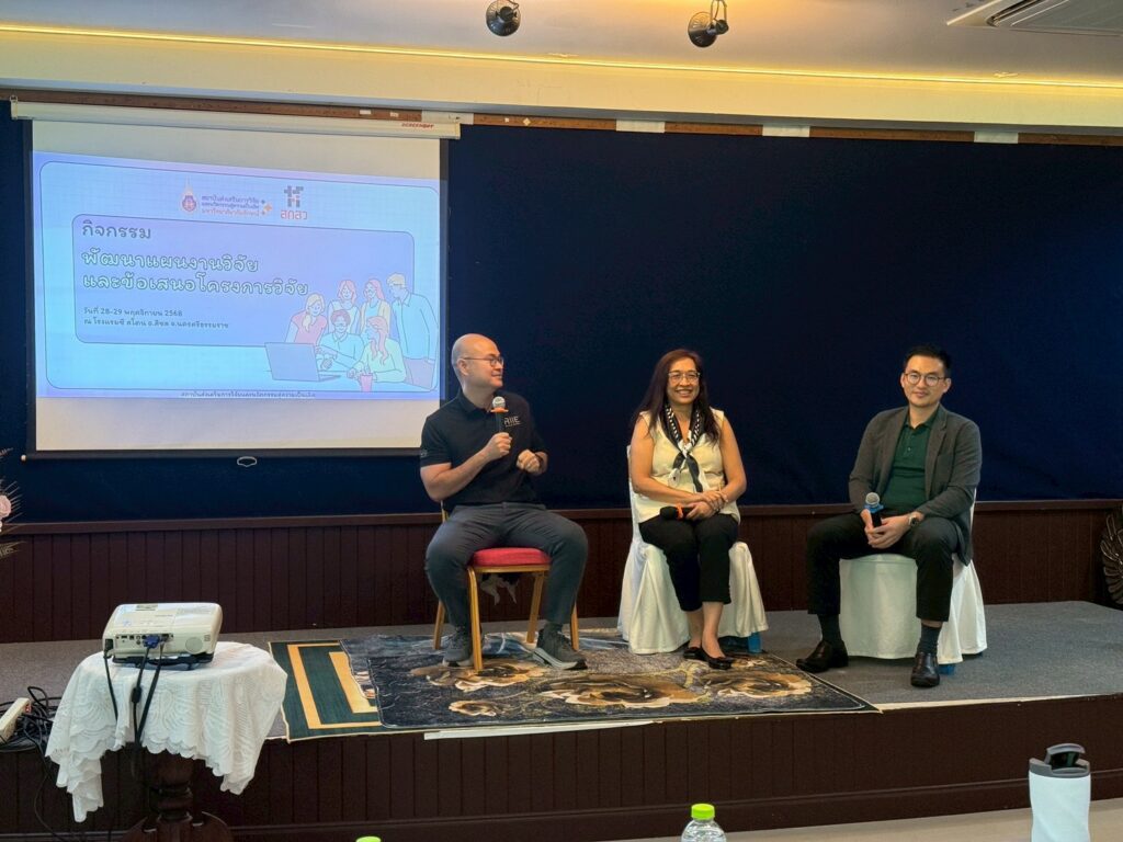 สถาบันส่งเสริมการวิจัยและนวัตกรรมสู่ความเป็นเลิศ จัดกิจกรรมอบรมเชิงปฏิบัติการ “พัฒนาแผนงานวิจัยและข้อเสนอโครงการวิจัย” ภายใต้โครงการสร้างเครือข่ายนักวิจัยเพื่อพัฒนาแผนงานและข้อเสนอโครงการวิจัย (Network for Research) ระหว่างวันที่ 28–29 พฤศจิกายน 2568 ณ โรงแรมซี สโตน อำเภอสิชล จังหวัดนครศรีธรรมราช โดยมีวัตถุประสงค์เพื่อเสริมสร้างความร่วมมือด้านงานวิจัยภายในมหาวิทยาลัยให้เกิดผลอย่างเป็นรูปธรรม ตลอดจนยกระดับศักยภาพนักวิจัยในการจัดทำแผนงานและข้อเสนอโครงการวิจัยที่มีคุณภาพ สำหรับยื่นขอทุนวิจัยภายนอกในปีงบประมาณ 2570 โดยมีนักวิจัยให้ความสนใจเข้าร่วมจำนวน 44 คน