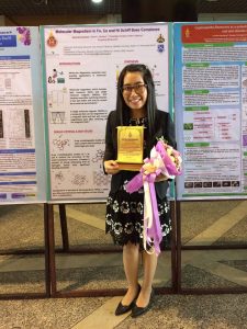ผลงานเรื่อง แม่เหล็กโมเลกุลของสารประกอบเชิงซ้อนเหล็ก โคบอลต์และนิกเกิล โดยใช้ชิฟเบสลิแกนด์โดย นางสาวดารุณี เสริฐผล และอาจารย์ที่ปรึกษาวิทยานิพนธ์ รองศาสตรจารย์ ดร.เดวิด เจมส์ ฮาร์ดิง และ ผู้ช่วยศาสตราจารย์ ดร.พิมผกา ฮาร์ดิง สำนักวิชาวิทยาศาสตร์ มหาวิทยาลัยวลัยลักษณ์
