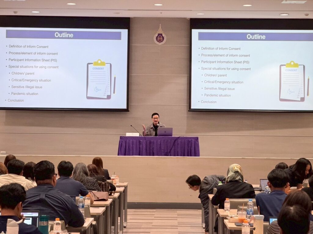On this occasion, Associate Professor Dr. Wichitpan Rongwong, Acting Director of the Institute for Research and Innovation Promotion toward Excellence, graciously presided over and delivered the opening remarks for the training program.