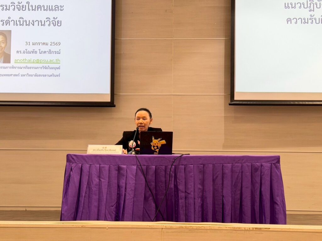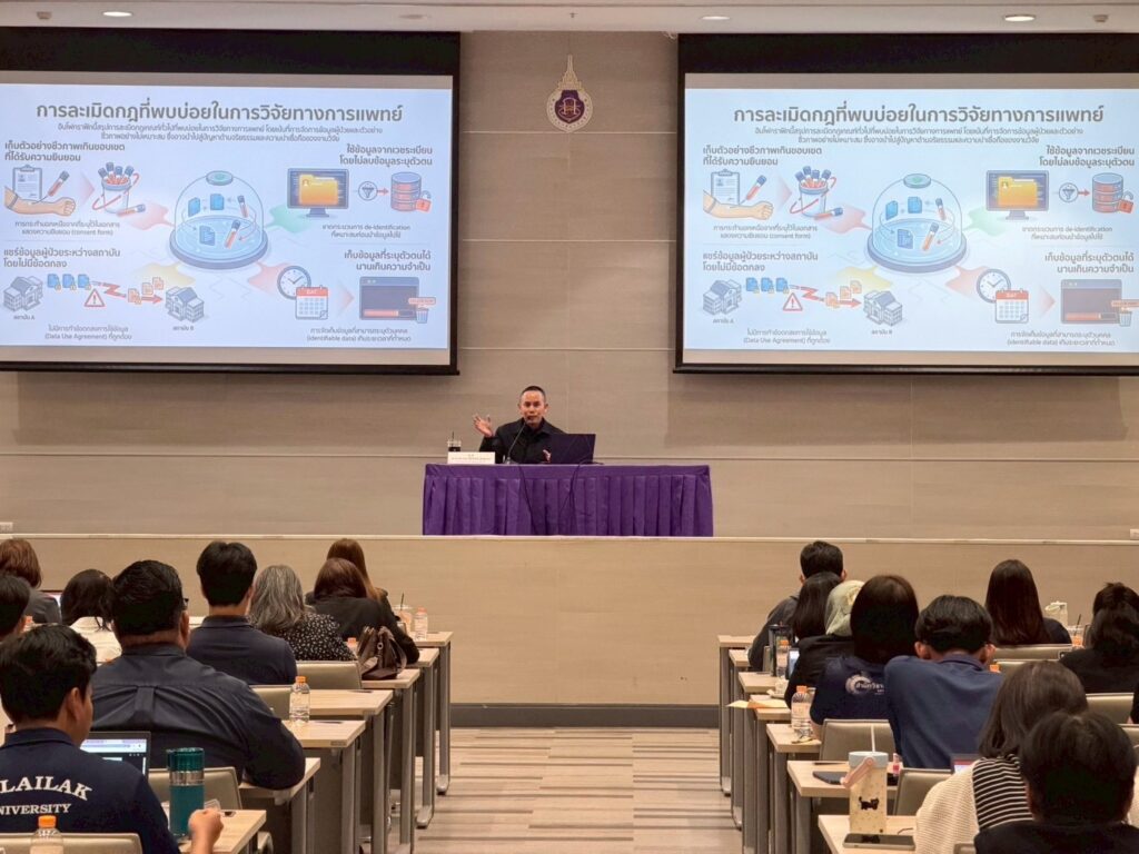 On Saturday, 31 January 2026, the Institute for Research and Innovation Promotion toward Excellence, in collaboration with the Forum for Ethical Review Committees in Thailand (FERCIT), organized the Human Research Ethics Training Program (Thai-language Course) at Bhattarathamaporn Conference Room, 9th Floor, Building B, Walailak University Medical Center Hospital.