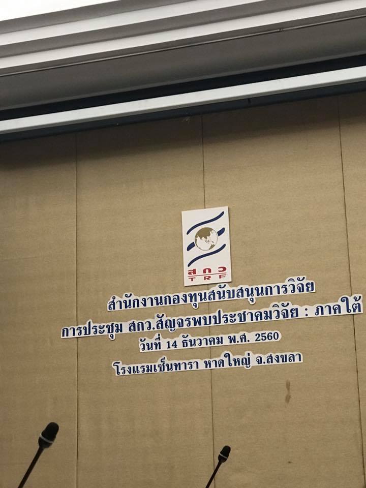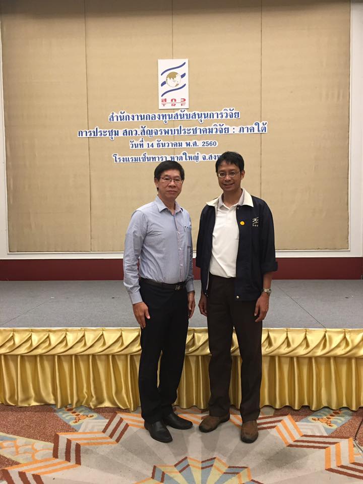 เมื่อวันที่ 14 ธันวาคม 2560 ศาสตราจารย์ น.สพ.ดร.อภินันท์ สุประเสริฐ รองอธิการบดีฝ่ายวิจัยและบริการสังคม และ ผู้ช่วยศาสตราจารย์ ดร.ยุวดี วิทยพันธ์ ผู้อำนวยการสถาบันวิจัยและนวัตกรรม มหาวิทยาลัยวลัยลักษณ์ เข้าร่วมประชุม แลกเปลี่ยนความคิดเห็นเกี่ยวกับ (ร่าง) แผนยุทธศาสตร์สำนักงานกองทุนสนับสนุนการวิจัย พ.ศ. 2560-2564 จัดโดย สำนักงานกองทุนสนับสนุนการวิจัย ในกิจกรรม “สกว. สัญจรพบประชาคมวิจัย: ภาคใต้” ณ ห้องสุคนธา ฮอล โรงแรมเซ็นทารา อ.หาดใหญ่ จ.สงขลา