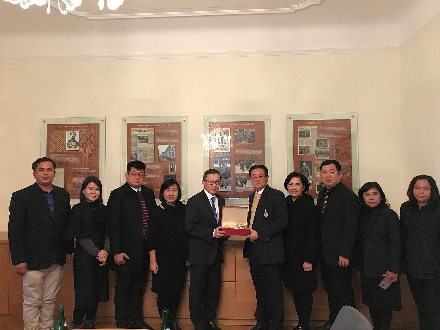 ท่านเอกอัครราชทูตไทยประจำกรุงปรากได้บรรยายเกี่ยวกับสภาพเศรษฐกิจและสังคม รวมถึงการท่องเที่ยวของกรุงปราก และพื้นที่ใกล้เคียง โดยดร.พิมพ์ลภัส พงศกรรังศิลป์ได้นำเสนอภาพรวมเกี่ยวกับโครงการวิจัยเมืองสปานานาชาติต้นแบบ ซึ่งท่านเอกอัครราชทูตไทยประจำกรุงปรากได้กรุณาให้คำแนะนำ รวมถึงการแลกเปลี่ยนมุมมองที่เกี่ยวข้องกับการพัฒนาการท่องเที่ยวของประเทศไทยก่อนที่นักวิจัยจะเดินทางไปเมือง Karlovy Vary เพื่อเก็บรวบรวมข้อมูลต่อไป