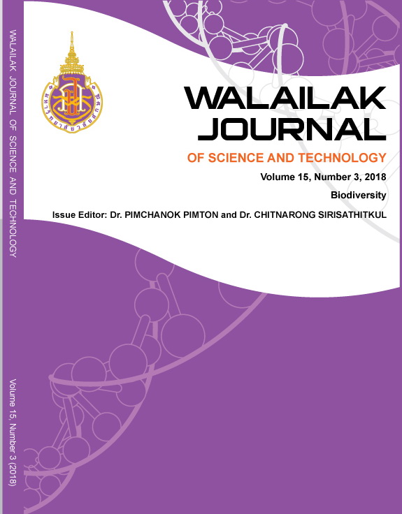 Walailak J Sci & Tech Vol 15 No 3, March 2018: Biodiversity มี อ. ดร. พิมพ์ชนก พิมพ์ทนต์ และ รศ. ดร. ชิตณรงค์ ศิริสถิตย์กุล ทำหน้าที่เป็นบรรณาธิการประจำฉบับ (Issue Editor) และ คุณโกสินธุ์ ศิริรักษ์ ทำหน้าที่บรรณาธิการจัดการ (Managing Editor) ผู้สนใจ สามารถดาวน์โหลดบทความ เพื่ออ่านและอ้างอิง ได้จาก wjst.wu.ac.th