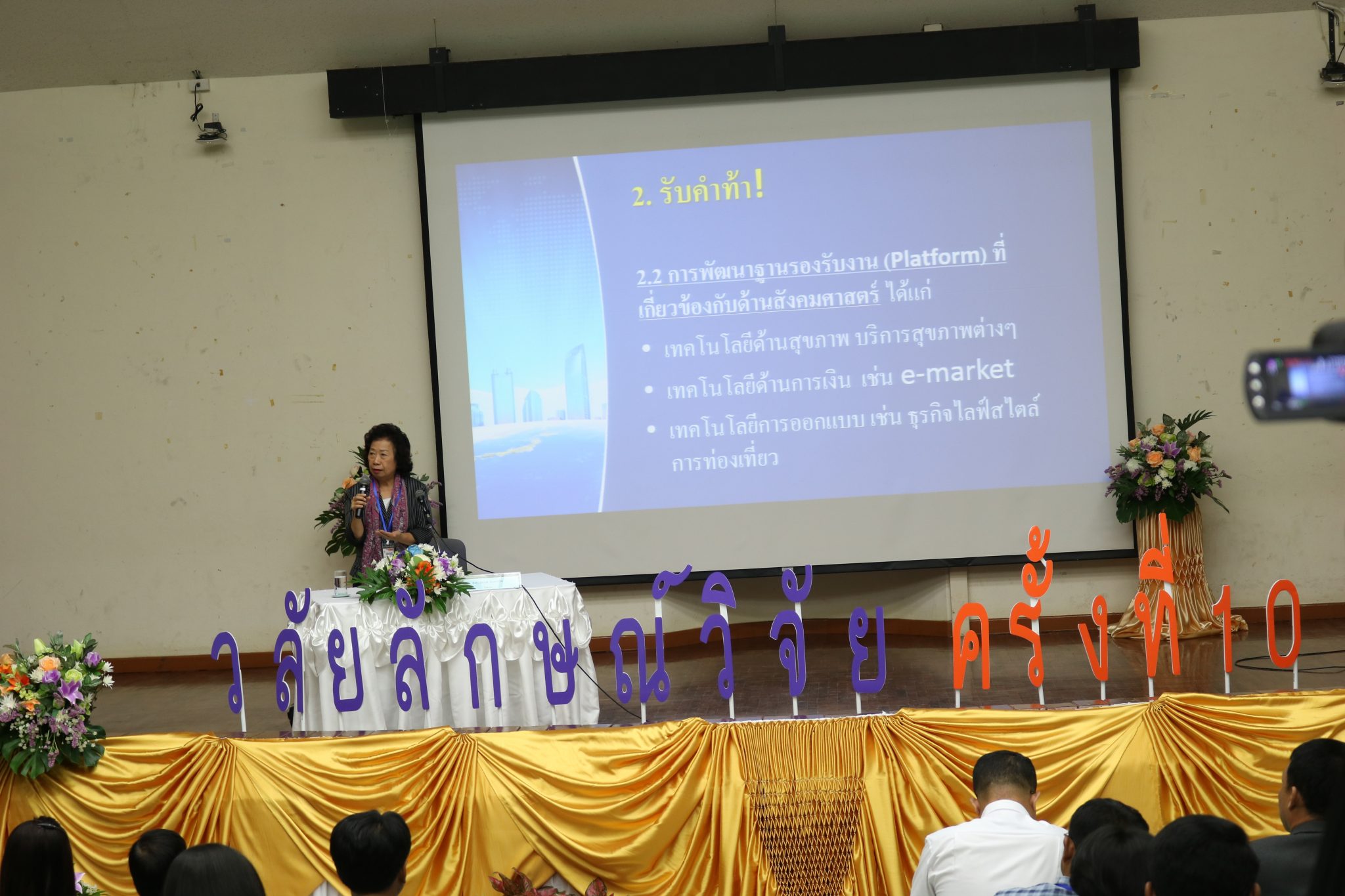 ศาสตราจารย์ ดร.สุภางค์ เริ่มพูดถึงข้อท้าทายที่ว่า การอยู่บนหอคอยงาช้าง ซึ่งไม่ได้ดีอย่างที่ทุกคนเข้าใจ นักวิจัยอยากทำงานวิจัยชิ้นเล็กๆ เพื่อขอตำแหน่งทางวิชาการ ทุนวิจัยมีแต่ว่าเรามีความสามารถที่จะทำมั๊ย ซึ่งนักศึกษาระดับปริญญาโท-เอก ส่วนมากยังไม่มีแนวคิดหรือประเด็นด้านการวิจัย หรือมีความสงสัย/สนใจในเรื่องอะไร นำมาสู่ข้อเรียกร้องการวิจัยเชิงนโยบายตามยุทธศาสตร์ชาติ ซึ่งแบ่งเป็น ยุทธศาสตร์การวิจัยและนวัตกรรมแห่งชาติ 20 ปี เพื่อตอบโจทย์การสร้างความมั่งคั่งทางเศรษฐกิจ การท้าทายสังคม การสร้างองค์ความรู้พื้นฐานของประเทศ และการสร้างบุคลากรพัฒนาระบบนิเวศและเครือข่ายการวิจัยและนวัตกรรมที่เข้มแข็ง ส่วนยุทธศาสตร์การขับเคลื่อนสู่ประเทศไทย 4.0 ใช้ความหลากหลายเชิงชีวภาพและความหลากหลายเชิงวัฒนธรรม มาปรับให้เป็นความได้เปรียบเชิงการแข่งขัน เติมเต็มด้วยวิทยาการ นวัตกรรม และความคิดสร้างสรรค์ โดยกำหนดกรอบยุทธศาสตร์ชาติระยะ 20 ปี(2560-2579) ใน 6 ด้าน คือ ด้านความมั่นคง การสร้างความสามารถในการแข่งขัน การพัฒนาและเสริมสร้างศักยภาพคน การสร้างโอกาสความเสมอภาคและเท่าเทียมกันทางสังคม การสร้างการเติบโตบนคุณภาพชีวิตที่เป็นมิตรกับสิ่งแวดล้อม และการปรับสมดุลและพัฒนาระบบการบริหารจัดการภาครัฐ