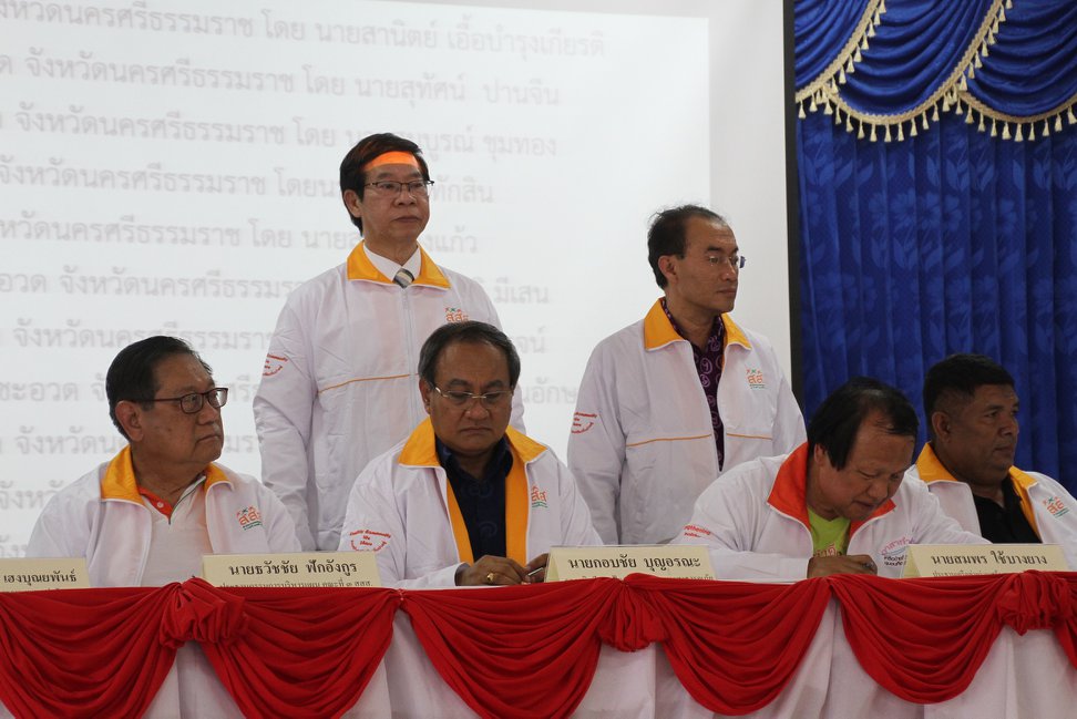 เมื่อวันที่ 20-21 เมษายน 2561 2561 ศ.น.สพ.ดร.อภินันท์ สุประเสริฐ รองอธิการบดีฝ่ายวิจัยและบริการสังคม ผศ.ดร.ยุวดี วิทยพันธ์ ผู้อำนวยการสถาบันวิจัยและพัฒนา ผศ.ดร.นิพนธ์ ทิพย์ศรีนิมิต คณบดีสำนักวิชาศิลปศาสตร์ ผศ.ดร.ปกรณ์ ดิษฐกิจ และ อาจารย์ ดร.เรจีย์ แก้วส่อง จากสำนักวิชาวิศวกรรมศาสตร์และทรัพยากร นักวิจัยจากสถาบันวิจัยและนวัตกรรม และผู้ช่วยวิจัยจาก ศูนย์ความเป็นเลิศด้านนิเวศวิทยาพยากรณ์และการจัดการ ได้เดินทางไปร่วมประชุมหารือเพื่อประสานความร่วมมือในการพัฒนางานวิจัยในการจัดการภัยพิบัติโดยชุมชนท้องถิ่นจังหวัดนครศรีธรรมราช ร่วมกับ คุณโกเมศร์ ทองบุญชู ผู้ประสานงานเครือข่ายการจัดการภัยพิบัติพื้นที่ภาคใต้ คุณธวัชชัย ฟักอังกูร ประกรรมการบริหารแผนงาน คณะที่ 3 สสส. คุณสมศักดิ์ สุวรรณสุจริต รองประธานกรรมการบริหารแผนงาน คณะที่ 3 สสส. คุณดวงพร เฮงบุณยพันธ์ ผู้อำนวยการสำนักสนับสนุนสุขภาวะชุมชน สำนักงานกองทุนสนับสนุนการสร้างเสริมสุขภาพ(สสส.) และนายอำเภอชะอวด ในงานประชุมเชิงปฏิบัติการและลงนามบันทึกข้อตกลงความร่วมมือเพื่อขับเคลื่อนเครือข่ายจัดการภัยพิบัติระหว่างเครือข่ายตำบลจัดการภัยพิบัติจังหวัดนครศรีธรรมราช กรมป้องกันและบรรเทาสาธารณภัย กระทรวงมหาดไทย และสำนักงานกองทุนสนับสุนนการสร้างเสริมสุขภาพ (สสส.) โดยสำนักสนับสนุนสุขภาวะชุมชน (สำนัก 3) ณ หอประชุมประชาคมที่ว่าการอำเภอชะอวด ตำบลชะอวด อำเภอชะอวด จังหวัดนครศรีธรรมราช ซึ่งมีเครือข่ายอาสมัครจัดการภัยพิบัติระดับตำบล 30 ตำบล นำร่องในจังหวัดนครศรีธรรม สำนักงานป้องกันและบรรเทาสาธารณภัยจังหวัดนครศรีธรรมราช และมูลนิธิ เข้าร่วมประชุมดังกล่าว จำนวนประมาณ 200 คน