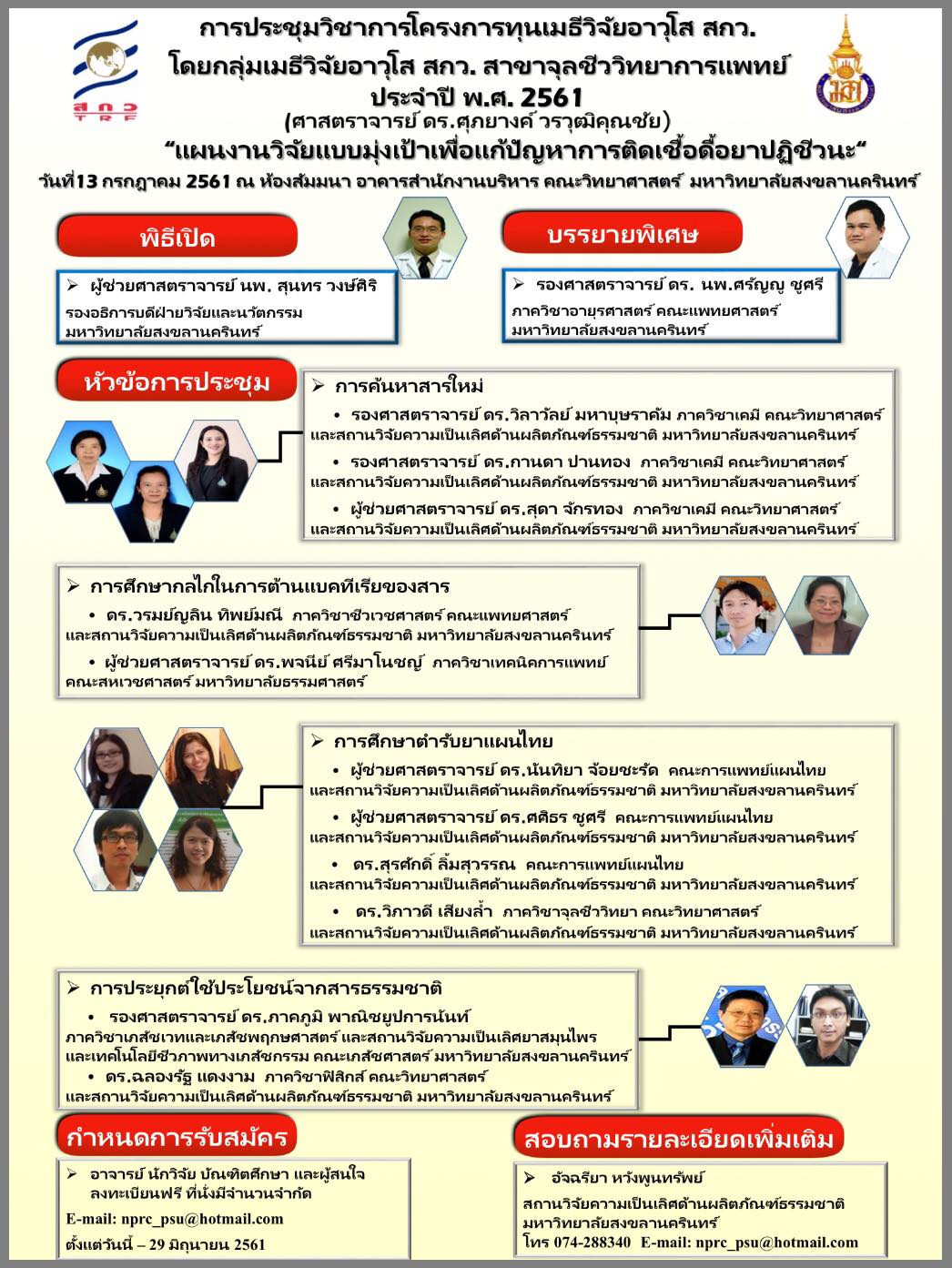 13 กรกฎาคม 2561 : ขอเชิญเข้าร่วมประชุมวิชาการทุนเมธีวิจัยอาวุโส สกว.