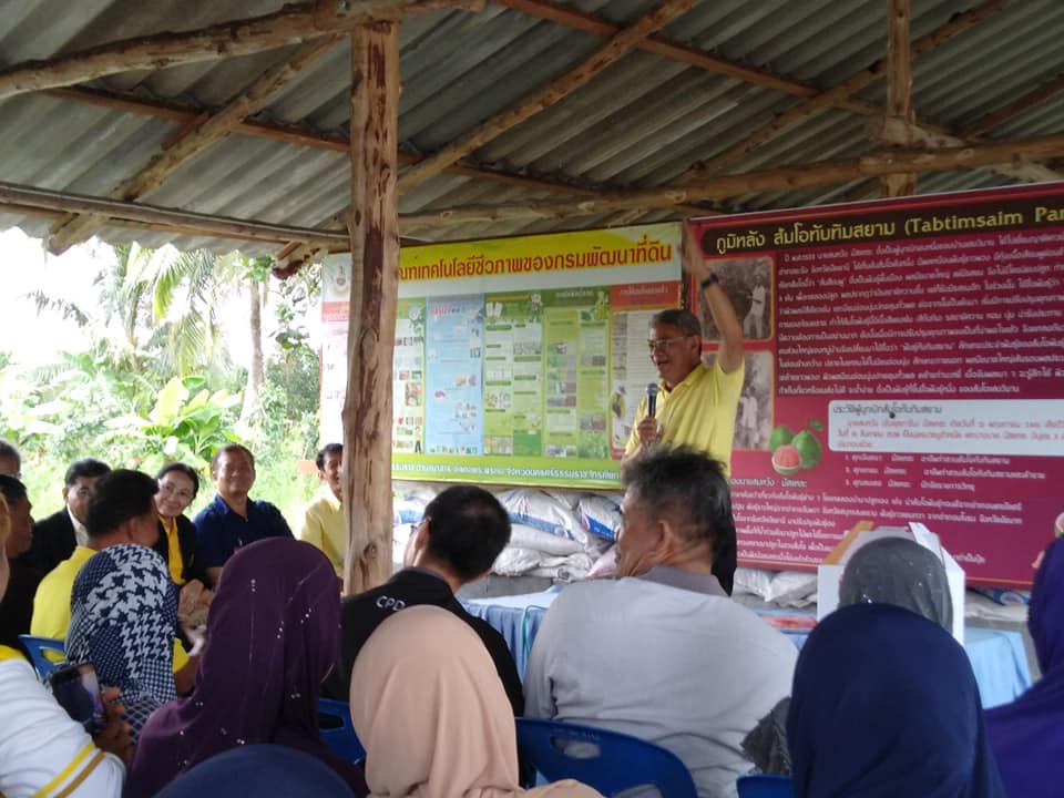 เมื่อวันที่ 13 กรกฎาคม 2561 ผศ.ดร.ยุวดี วิทยพันธ์ ผู้อำนวยการสถาบันวิจัยและนวัตกรรม พร้อมด้วยบุคลากรสถาบันวิจัยและนวัตกรรม ม.วลัยลักษณ์ ลงพื้นที่ลุ่มน้ำปากพนัง ในโอกาสที่ ดร.วิวัฒน์ ศัลยกำธร รัฐมนตรีช่วยว่าการกระทรวงเกษตรและสหกรณ์ ลงพื้นที่เพื่อตรวจเยี่ยมการขับเคลื่อนงานโครงการพัฒนาพื้นที่ลุ่มน้ำปากพนังอันเนื่องมาจากพระราชดำริ และโครงการตามนโยบายกระทรวงเกษตรและสหกรณ์ในพื้นที่จังหวัดนครศรีธรรมราช ทั้งนี้ ผลของการลงพื้นที่ร่วมกันในวันนี้มีแนวทางการจัดตั้งคณะทำงานร่วมกัน (MOU) ระหว่างมหาวิทยาลัยในพื้นที่ ทั้ง ม.วลัยลักษณ์ มรภ.นครศรีธรรมราช รวมทั้งหน่วยงานในพื้นที่โดยเฉพาะอย่างยิ่งเกษตรและสหกรณ์จังหวัดเพื่อพัฒนาเกษตรกรมนพื้นที่เช่นอาชีพไร่จาก และสวนส้มโอทับทิมสยาม