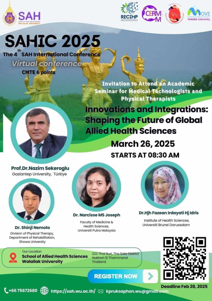 SAHIC 2025 – The 4th SAH International Conference Virtual Conference | March 26, 2025 | Starts at 08:30 AM Innovations and Integrations: Shaping the Future of Global Allied Health Sciences Join us for cutting-edge research presentations from international experts in Allied Health Sciences! Keynote Speakers: Dr. Shinji Nemoto (Showa University) – Muscle Oxygenation Dynamics […]