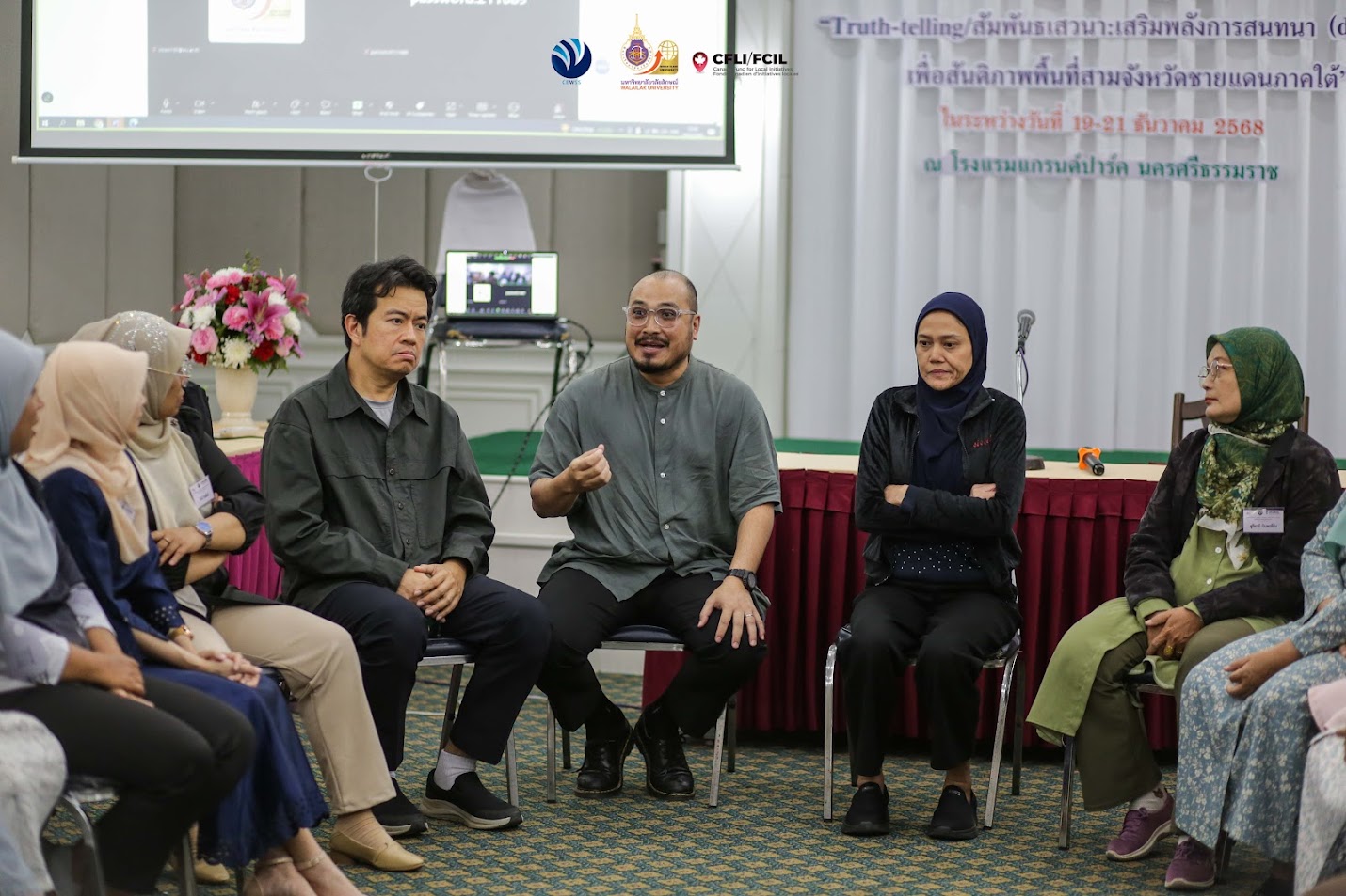 From December 19-21, 2025, the Research Center on Women and Social Security (RCWSS), in collaboration with the Canada Fund for Local Initiatives (CFLI), organized a workshop entitled “Truth-telling/Relational Dialogue: Empowering Dialogue for Peace in Thailand’s Southern Border Provinces.” The workshop was held from December 19–21, 2025 at the Grand Park Hotel, Nakhon Si Thammarat Province.