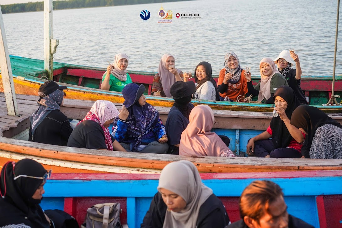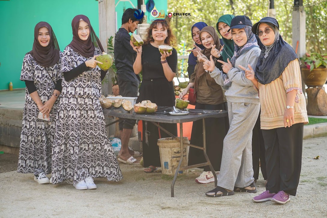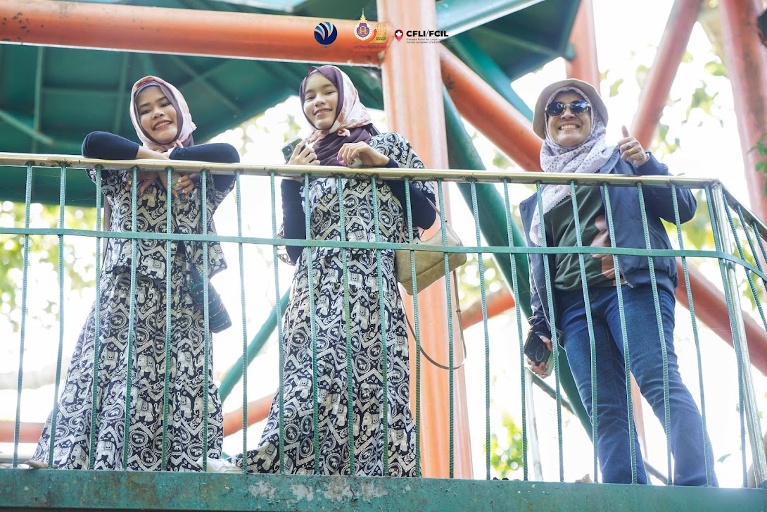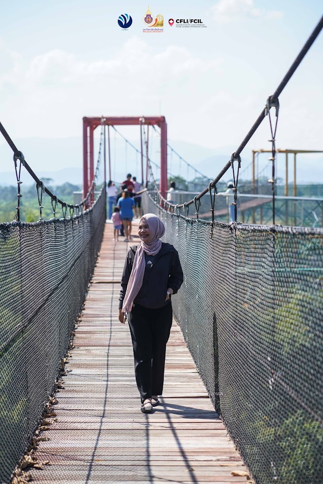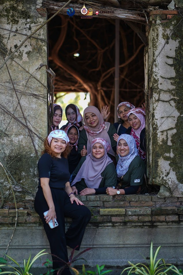 On the third day, the workshop emphasized empowerment and network-building through off-site activities and collective reflection. Participants joined the “Drink Coffee and Watch the Sun” at Ban Laem Homestay, where they learned traditional tie-dye techniques using mangrove bark and listened to the history of Ban Laem community. Although the community is predominantly Muslim, it has long demonstrated peaceful coexistence among people of different faiths, reflecting the area’s multicultural way of life. Before returning to Walailak University to explore the Botanical Garden and Sky Walk, the group stopped at Wat Phai San Sathit, an important historical site. These off-site activities further strengthened bonds among participants, who included village health volunteers, community volunteers, and women leaders from various areas in the three southern border provinces. Following the workshop, participants are expected to design and implement relational dialogue activities in their own communities to encourage open communication, rebuild trust, and foster positive relationships across ethnicities, genders, religions, and generations—reflecting the workshop’s guiding slogan: