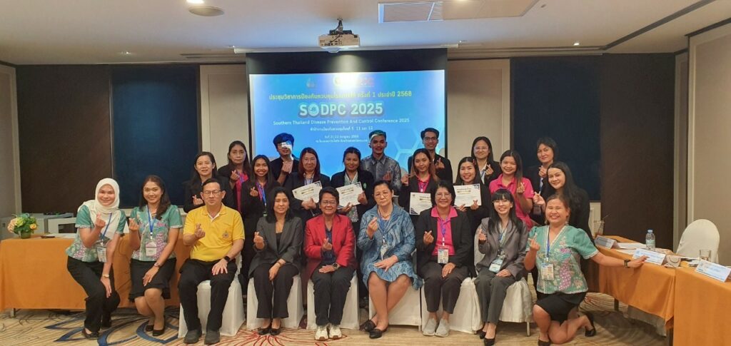 This conference was held from 22–23 July 2025 at Twin Lotus Hotel, Mueang District, Nakhon Si Thammarat Province, under the theme “One Health: From Problem Solving to Best Practices and Key Policies.” It aimed to promote collaboration, share academic knowledge, and develop innovations and technologies for disease prevention and health hazards control in Health Regions 5, 11, and 12.
