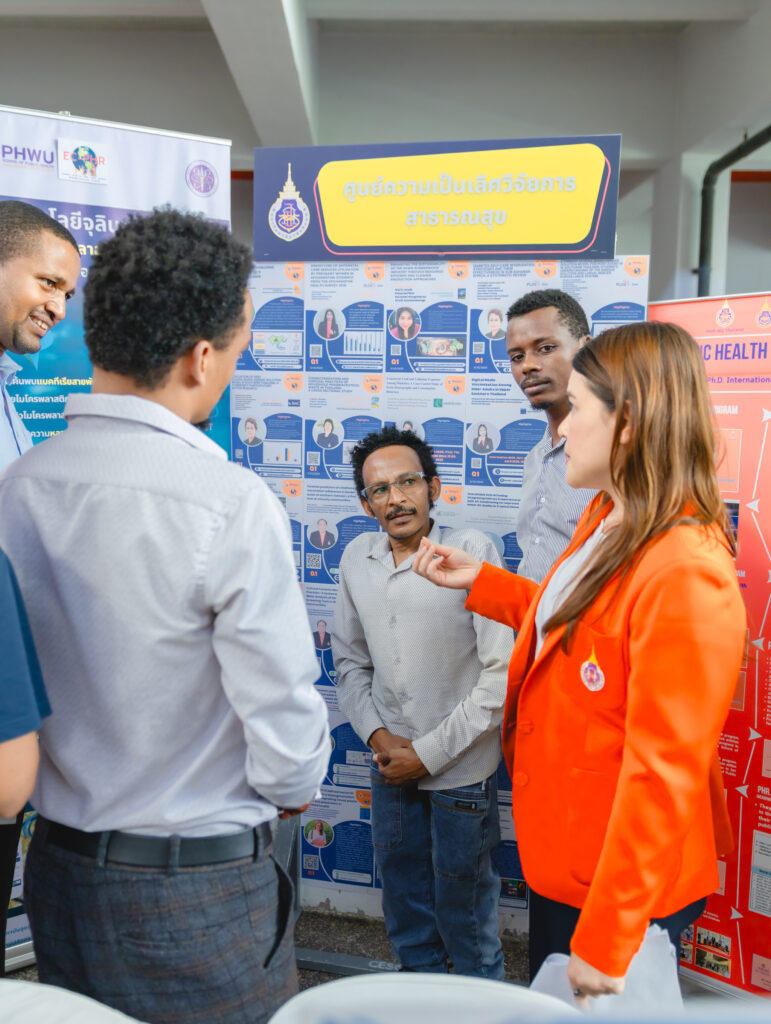 The Excellent Center for Public Health Research, Walailak University presented distinguished research works at the exhibition. We sincerely thank Assoc. Prof. Dr. Charuai Suwanbamrung and Assist. Prof. Dr. Saowaluk Krainara for bringing their highlighted projects to represent the center, as well as all our members for their valuable contributions through high-quality publications and research dissemination—reflecting the university’s strength in public health research.