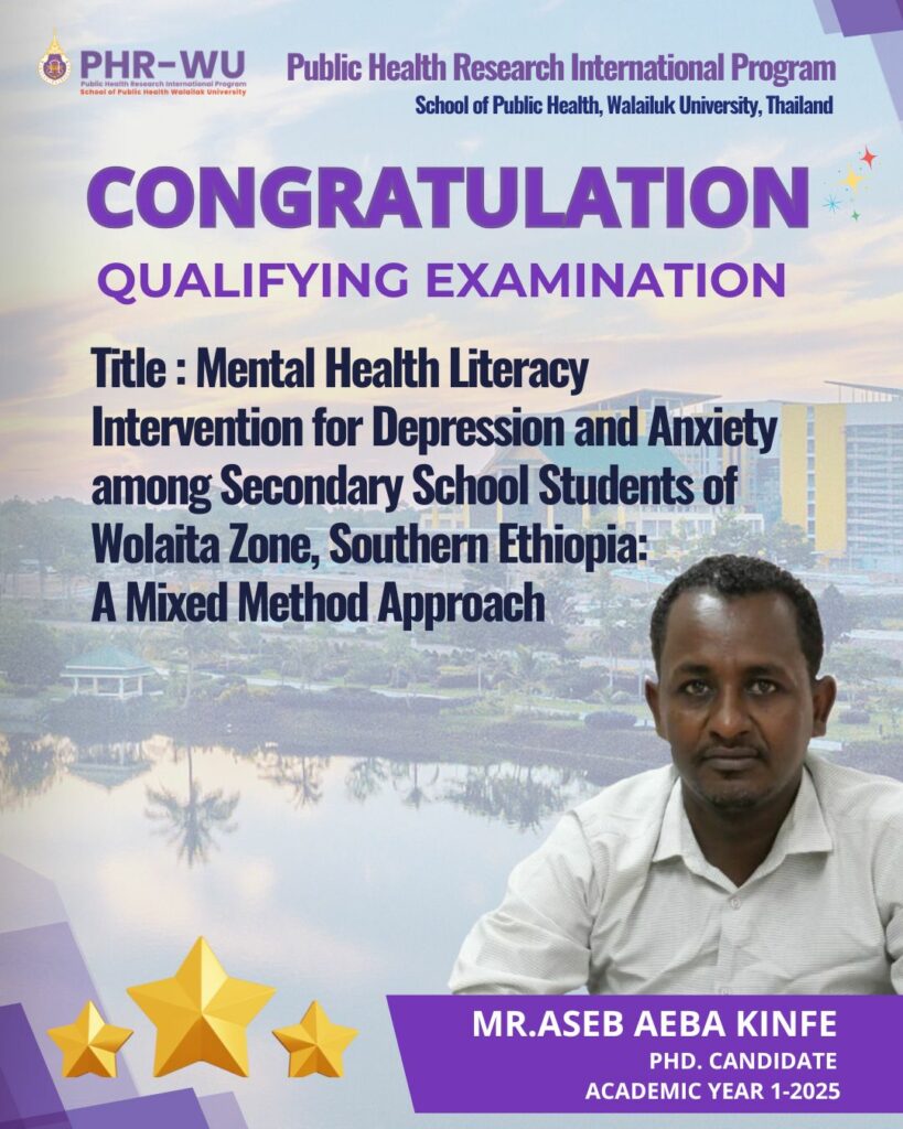 We would like to extend our heartfelt congratulations to all Ph.D. candidates from the Public Health Research (PHR) Program, School of Public Health, Walailak University, who have successfully completed their Qualifying Examination (QE) held from October 2–6, 2025.