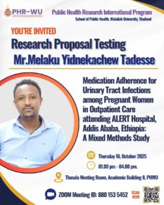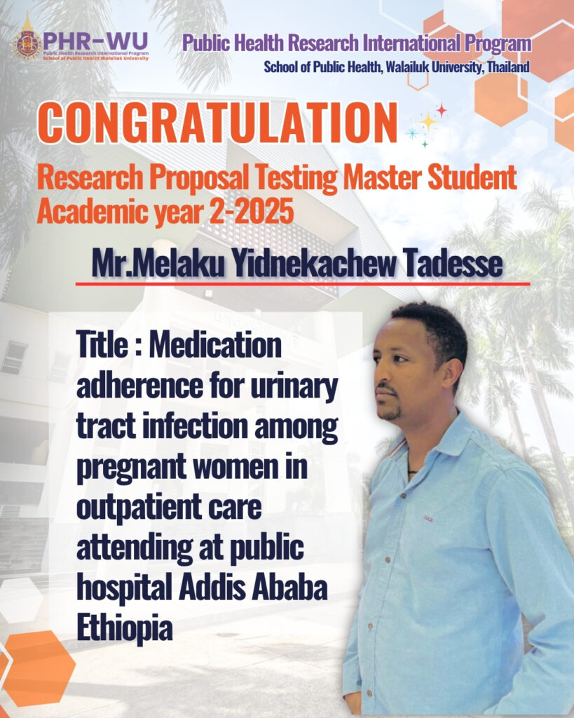 Congratulations to all Master of Public Health Research (PHR) students who have successfully completed their Research Proposal Testing, held between 15–17 October 2025 at Walailak University. This accomplishment reflects your hard work, dedication, and determination to advance in the field of public health research. May this milestone inspire you to continue your journey toward creating meaningful impacts on health and well-being in our communities.