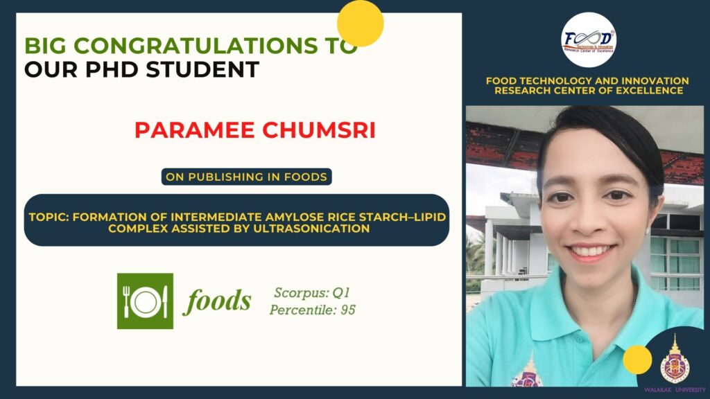Congratulations to both our researchers, Assoc. Prof. Dr. Manat Chaijan and Assoc. Prof. Dr. Worawan Panpipat, on their publication in molecules (Q1)