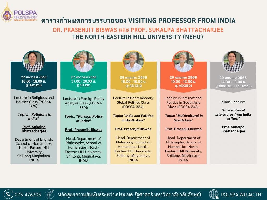 ขอเชิญผู้ที่สนใจ เข้าร่วมฟังบรรยายของ Visiting Professor จาก The North-Eastern Hill University ประเทศอินเดีย