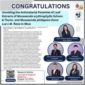 The Center of Excellence in Tropical Pathobiology Congratulates Asst. Prof. Tassanee Ongtanasup on Receiving the Distinguished Thammasat Medical Alumni Award Read More » March 12, 2026