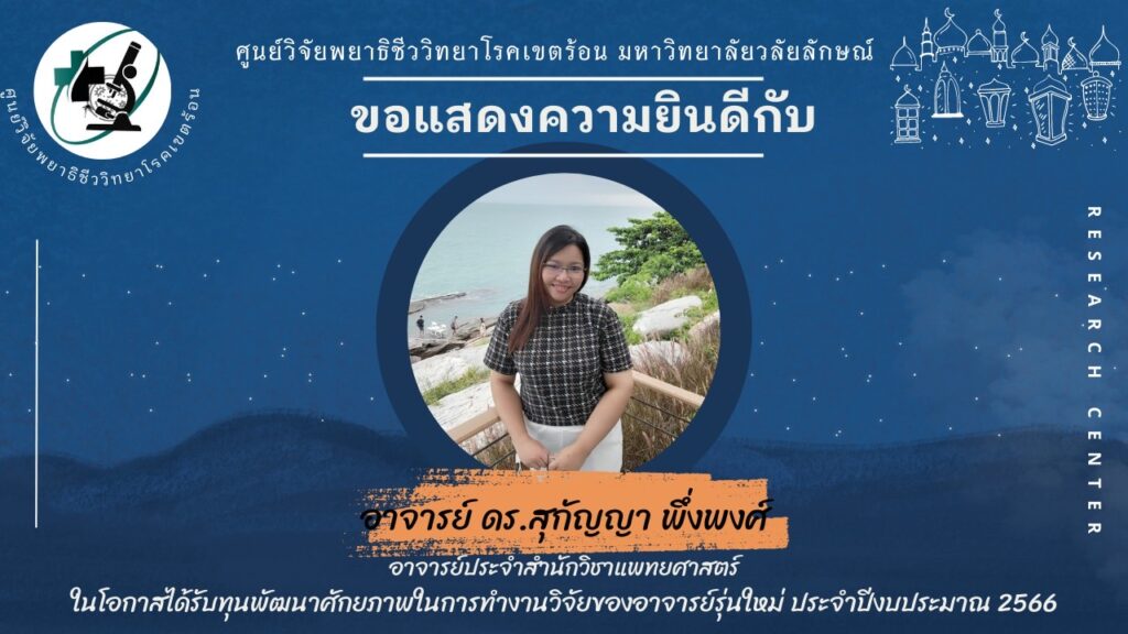 Research Center in Tropical Pathobiology congratulations to Dr. Sukanya Phungphong for receiving the Research Grant for New Scholar 2023 from the Office of the Ministry of Higher Education, Science, Research and Innovation