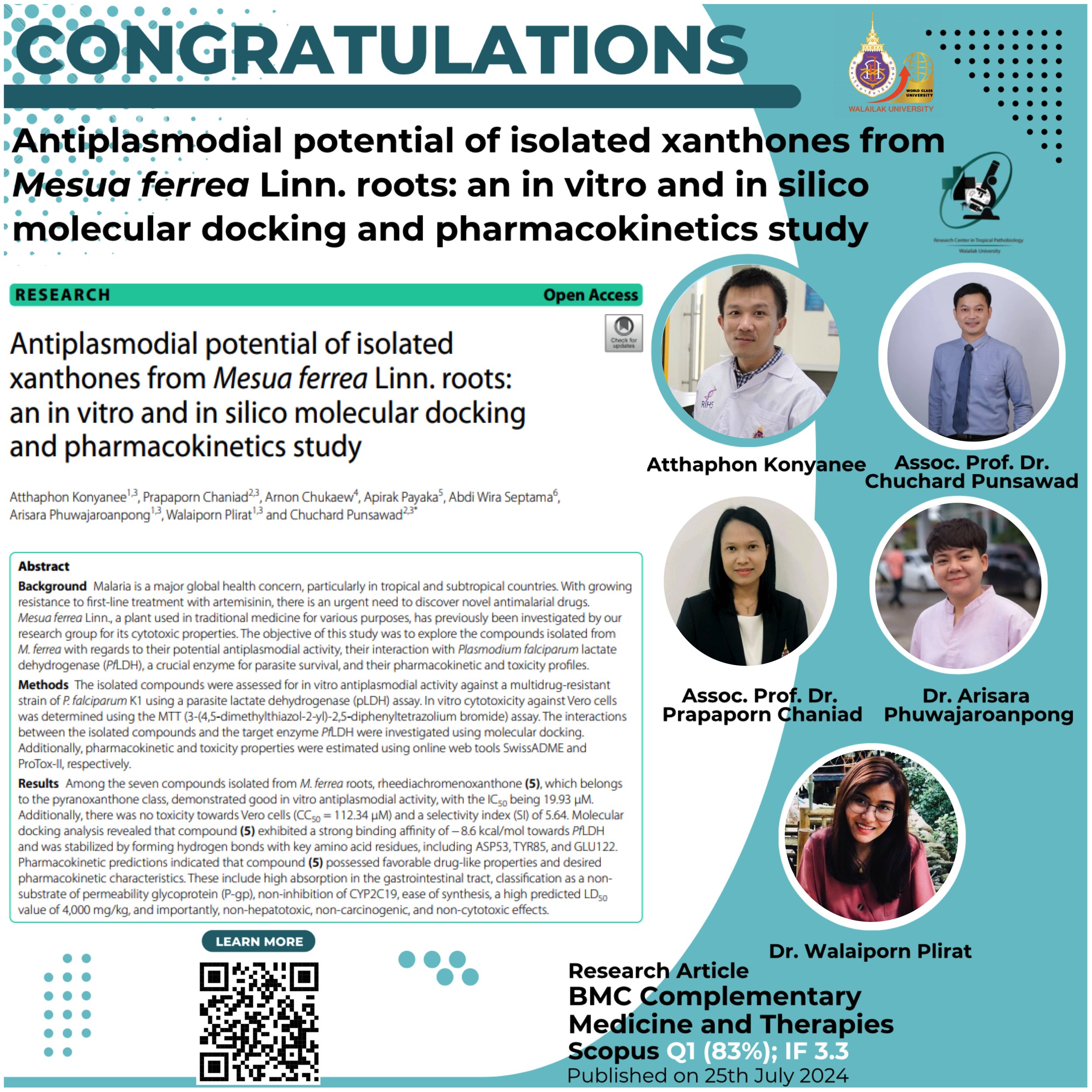 The Research Center in Tropical Pathobiology congratulates Mr. Atthaphon Konyanee (First author), Assoc. Prof. Dr.Prapaporn Chaniad (Co-author), Dr.Arisara Phuwajaroanpong (Co-author), Dr.Walaiporn Plirat (Co-author), and Assoc. Prof. Dr. Chuchard Punsawad (Corresponding author) on the acceptance of their research for publication in the BMC Complementary Medicine and Therapies, which is listed in the Scopus Q1 database with […]