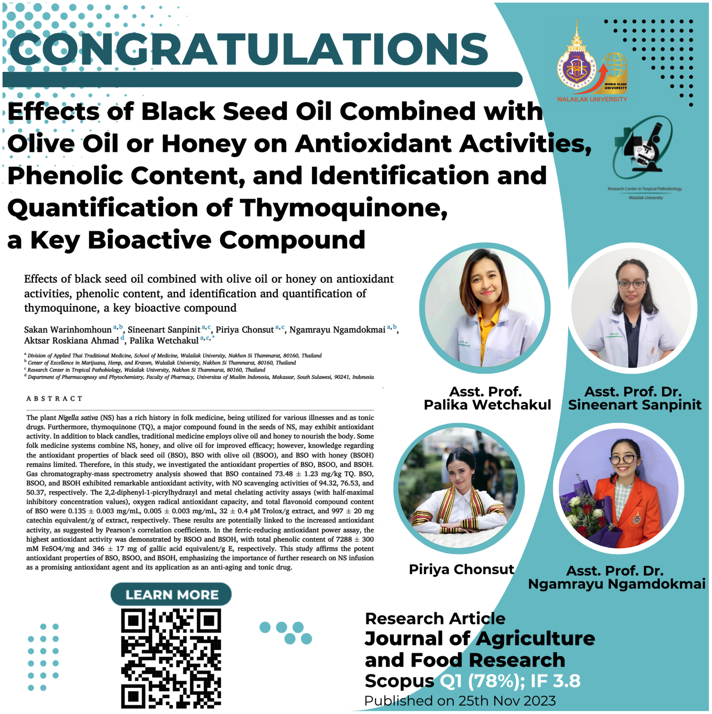 The Research Center in Tropical Pathobiology congratulates Asst. Prof. Palika Vejkul (Corresponding author), Asst. Prof. Dr. Sineenart Sanpinit (Co-author), Miss Piriya Chonsut (Co-author), and Asst. Prof. Dr. Ngamrayu Ngamdokmai (Co-author) on the acceptance of their research for publication in the Journal of Agriculture and Food Research, which is listed in the Scopus Q1 database with […]
