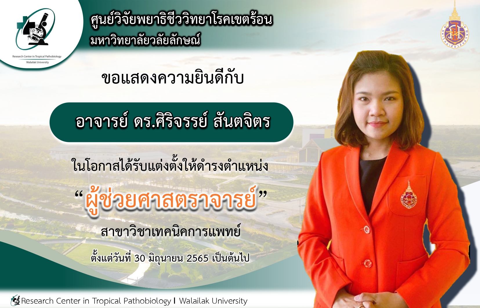 /*! elementor – v3.10.2 – 29-01-2023 */ .elementor-widget-image{text-align:center}.elementor-widget-image a{display:inline-block}.elementor-widget-image a img[src$=”.svg”]{width:48px}.elementor-widget-image img{vertical-align:middle;display:inline-block} Research Center in Tropical Pathobiology congratulations to Asst.Prof.Dr.Prapaporn Chaniad on the occasion of being appointed as “Associate Professor” in Pharmacology. The appointment has been in effect on 28 April 2022 onwards