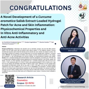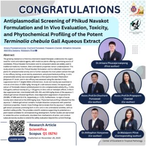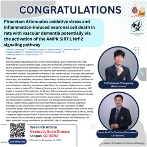 The Center of Excellence in Tropical Pathobiology Congratulates Asst.Prof. Piriya Chonsut on Receiving the Rising Star Lecturer Award January 5, 2026 Read More »