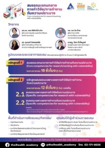 ขอเชิญนักวิจัย/ผู้สนใจในประเด็นเปราะบาง เข้าร่วมอบรมพัฒนาศักยภาพ หลักสูตรสมรรถนะแกนกลางการทำวิจัยกับความเปราะบาง March 31, 2025 Read More »