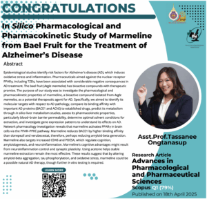 Congratulations to Asst.Prof. Tassanee Ongtanasup on the Publication in Advances in Pharmacological and Pharmaceutical Sciences June 10, 2025 Read More »