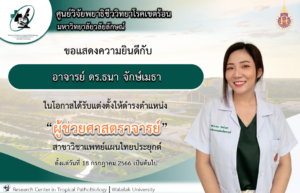 Congratulations to Asst.Prof.Dr. Chonticha Romyasamit on being appointed to an academic position June 14, 2024 Read More »