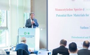 โดย รศ.ดร. สุธน ได้บรรยายในหัวข้อ “Monocotyledon Species (Coconut, Oil Palm and Bamboo): Potential Raw Materials for Engineered Wood Products” ซึ่งเป็นการแลกเปลี่ยนประสบการณ์วิจัยที่ทาง รศ.ดร. สุธน และทีมวิจัยได้ดำเนินการวิจัยในการหาแนวทางการใช้ประโยชน์ไม้จากลำต้นมะพร้าว ปาล์มน้ำมัน และไผ่ ซึ่งมีอยู่ปริมาณมากทั่วโลก (รวมถึงในประเทศไทย) แต่ยังไม่มีการนำไปใช้ประโยชน์ได้อย่างมีประสิทธิภาพเนื่องจากยังขาดองค์ความรู้ในวัสดุไม้ดังกล่าว โดย ทาง รศ.ดร.สุธน และทีมวิจัยมุ่งเน้นพัฒนาผลิตภัณฑ์ไม้เชิงวิศวกรรม (Engineered Wood Products) จากวัสดุไม้ทั้ง 3 ชนิด เพื่อใช้สำหรับการก่อสร้างอาคารที่เป็นมิตรกับสิ่งแวดล้อมและมีประสิทธิภาพทางด้านการประหยัดพลังงาน ซึ่งนอกจากจะเป็นการเพิ่มมูลค่าให้กับวัสดุไม้ดังกล่าวแล้ว ยังสอดรับกับแนวทางการพัฒนาที่ยั่งยืนขององค์การสหประชาชาติ (Sustainable Development Goals, SDGs) อีกด้วย